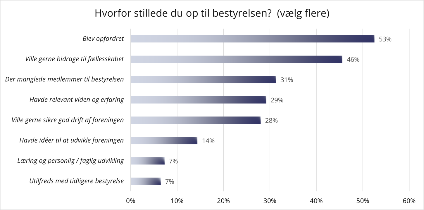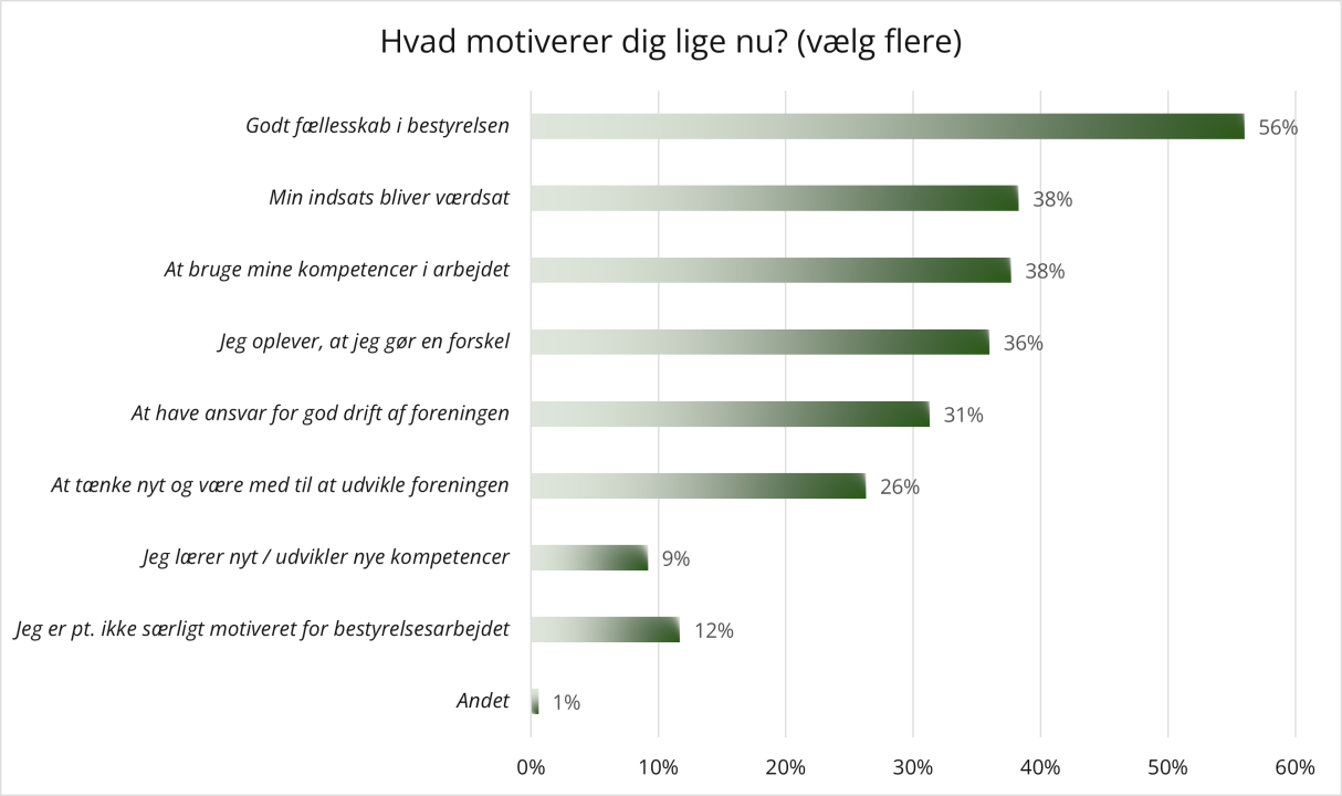 I undersøgelsen spurgte vi ind til de frivilliges motivation. Hvorfor gik de ind i bestyrelsesarbejdet i sin tid? Men også til hvad, der motiverer dem i dag.