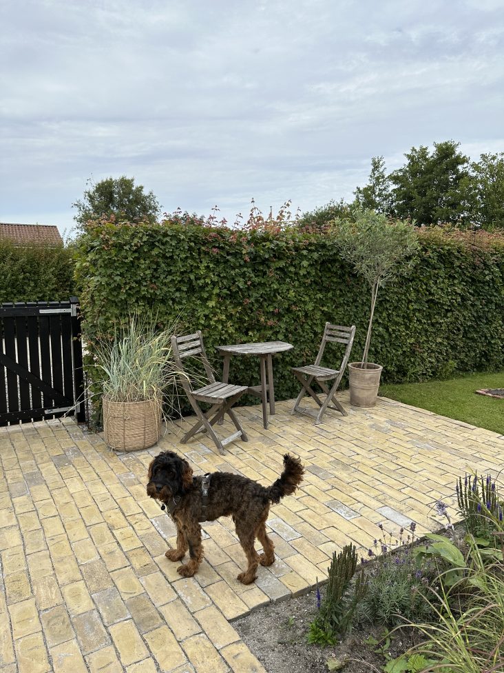 Haven omkring huset er anlagt med lige så stor omtanke. Emma har udnyttet sin landskabsfaglige viden til at skabe grønne rum og kroge til både afslapning, havedyrkning og hundeleg. Små stier snor sig gennem bede med bærbuske, stauder og urter, og lyden af fuglekvidder blander sig med latter og stemmer inde fra nabohaven.