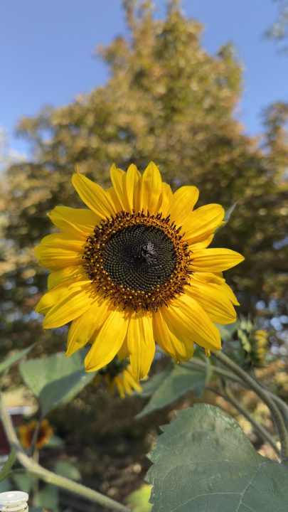 ”Jeg elsker blomster – tulipaner, stokroser, narcisser og solsikker,” stråler Olena Tarasenko, mens hun på en solrig sensommerdag stolt viser sit frodige højbed frem og et lille jordstykke bagved, hvor solsikkerne knejser rankt.